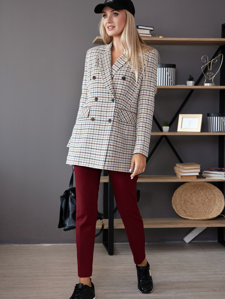 стиле «оверсайз» удлиненный из поливискозной ткани в клетку, с эластаном.