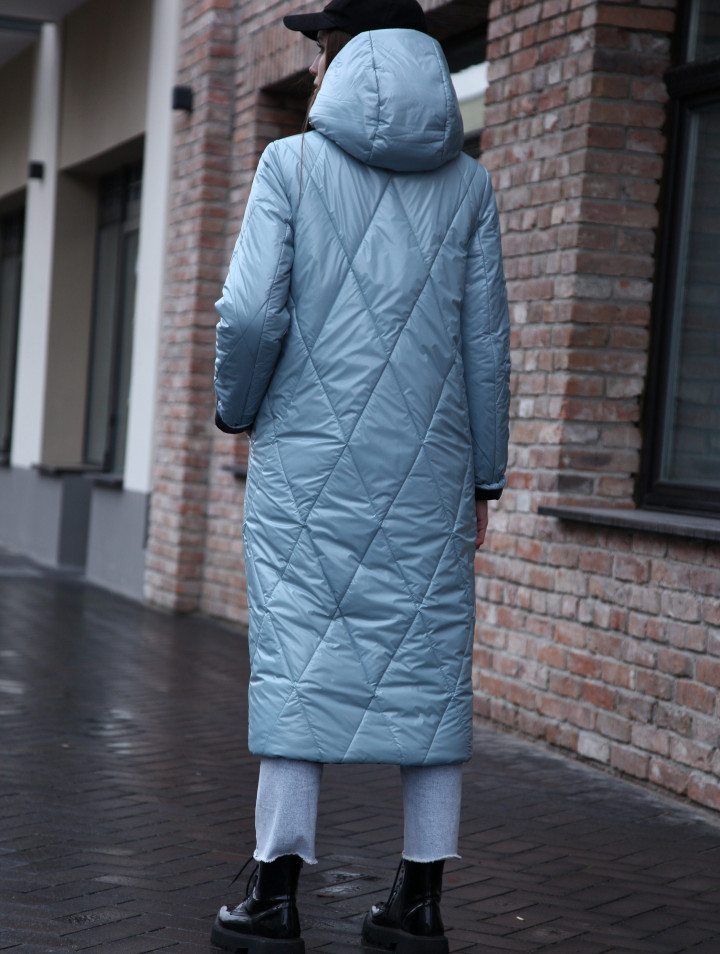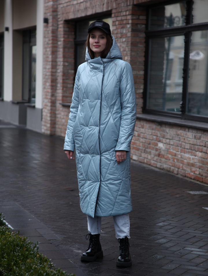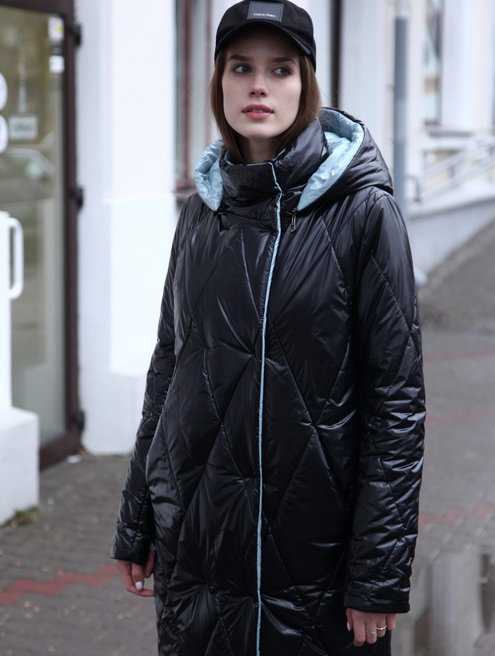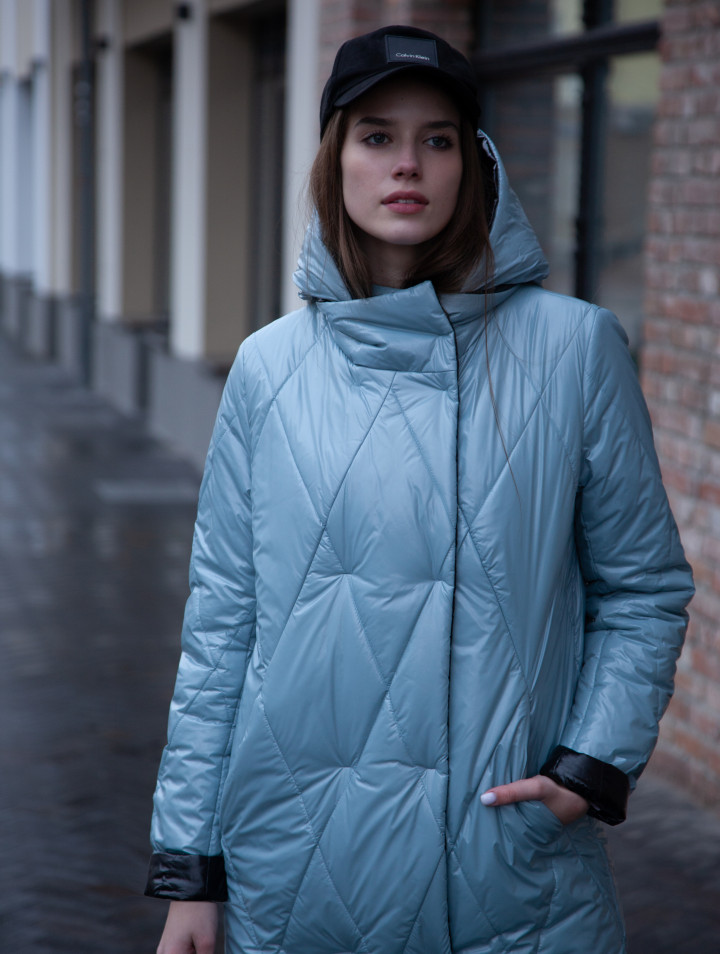 силуэта ,слегка заужено к низу ,с капюшоном на молнии ,рукав втачной с